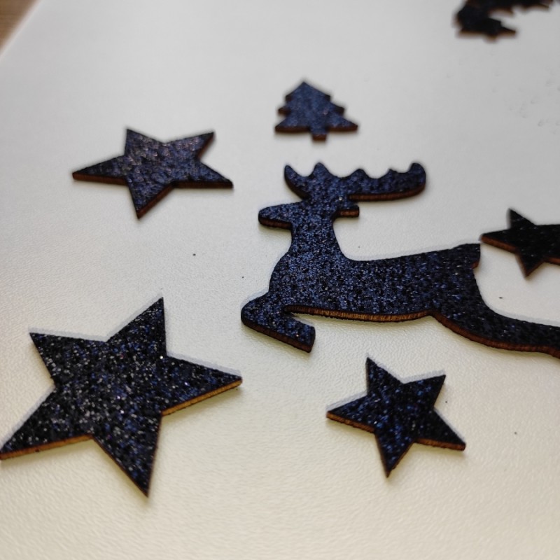 Ozdoby są dwustronnie pokryte brokatem