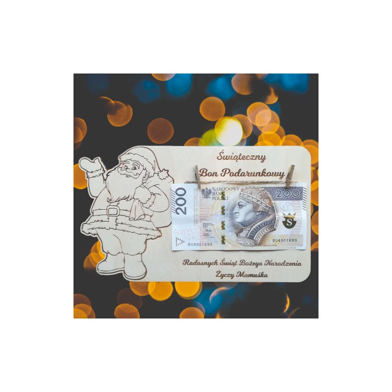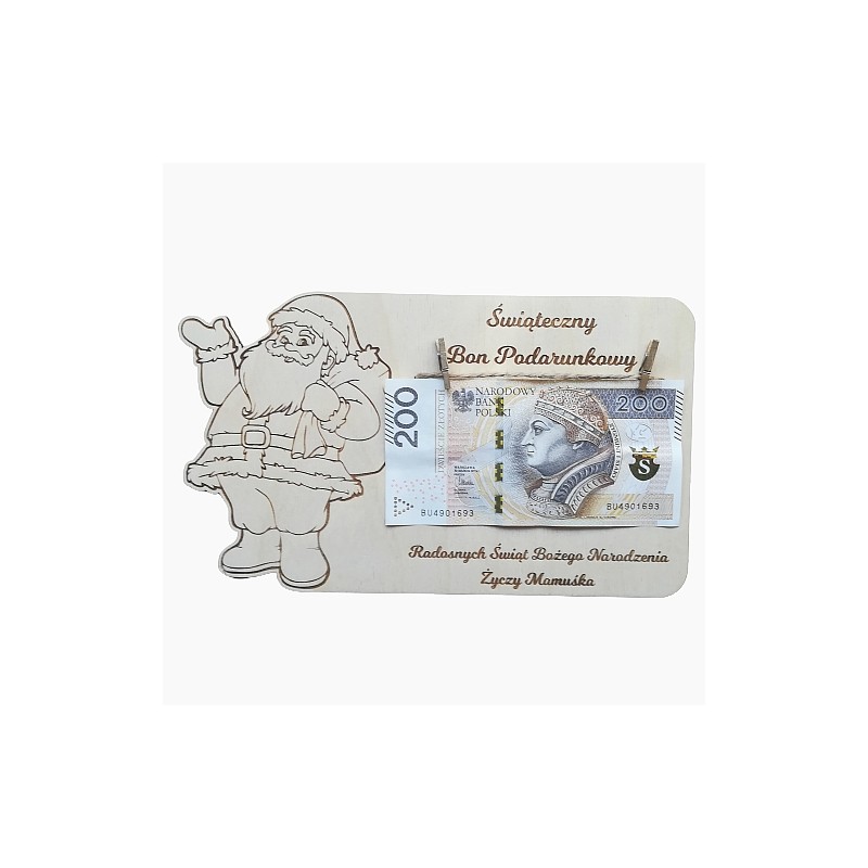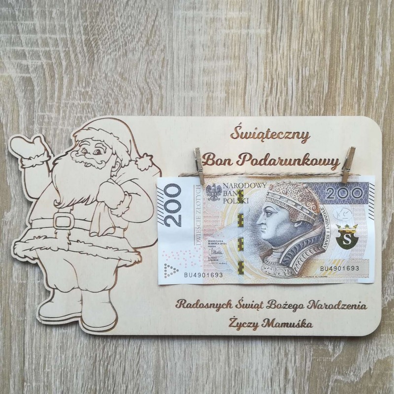 Drewniana tabliczka na pieniądze jest oryginalną alternatywą tradycyjnej kartki z życzeniami czy tzw koperty. Sznureczek przesyłamy w wersji nie zawiązanej. Wystarczy przypiąć banknoty do klamerek, które dołączone są do tabliczki
