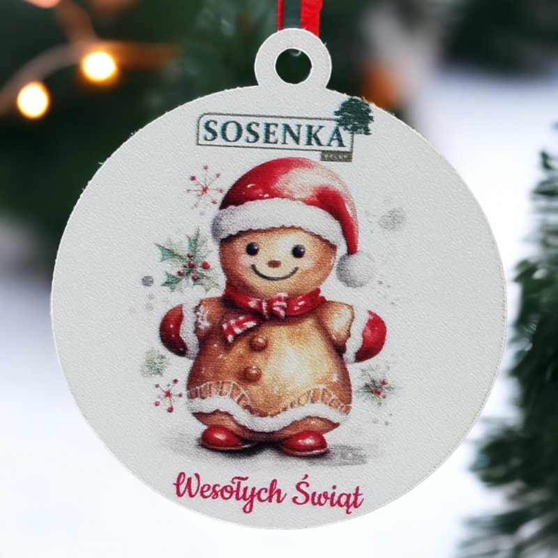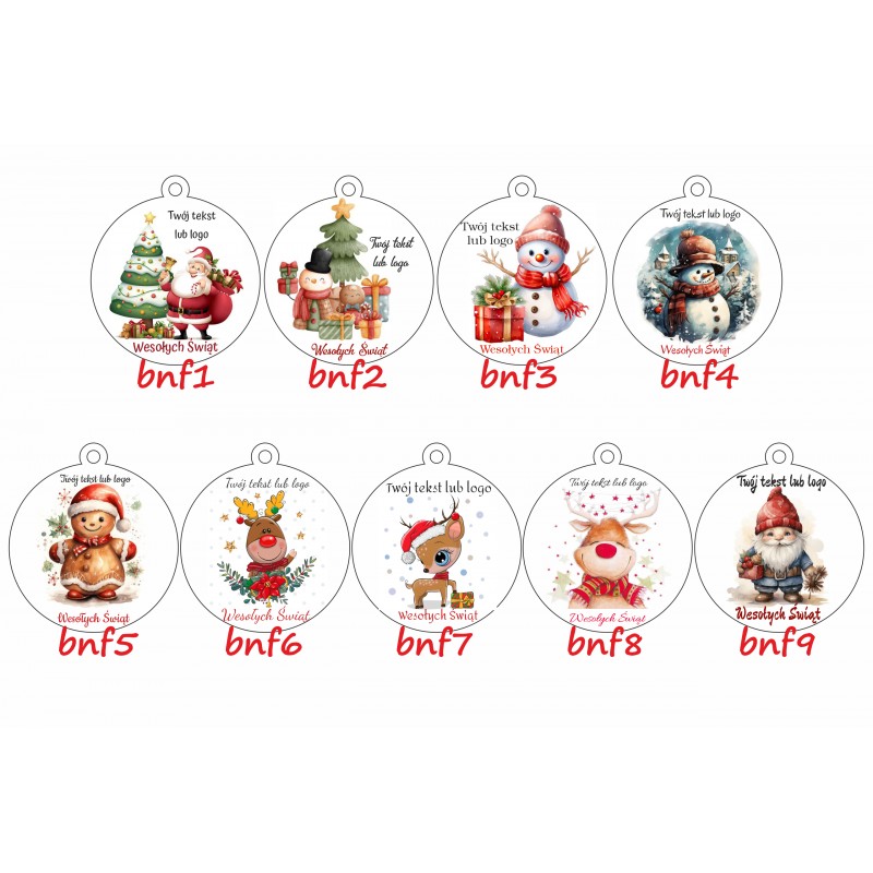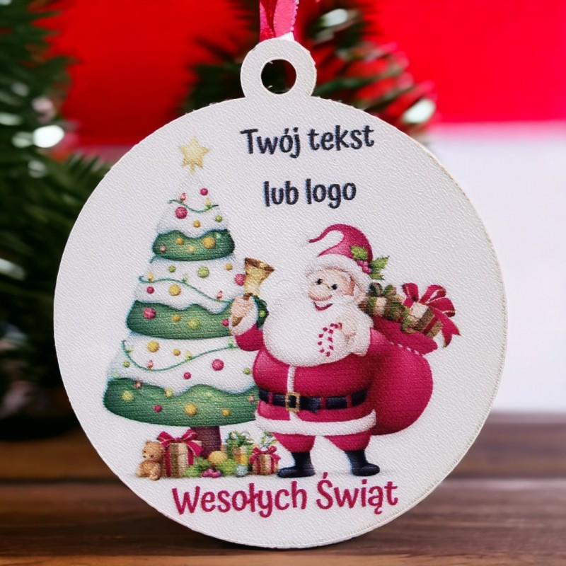 Bombka posiada trwały, kolorowy nadruk uv z motywem Świątecznym oraz Logo Twojej Firmy.