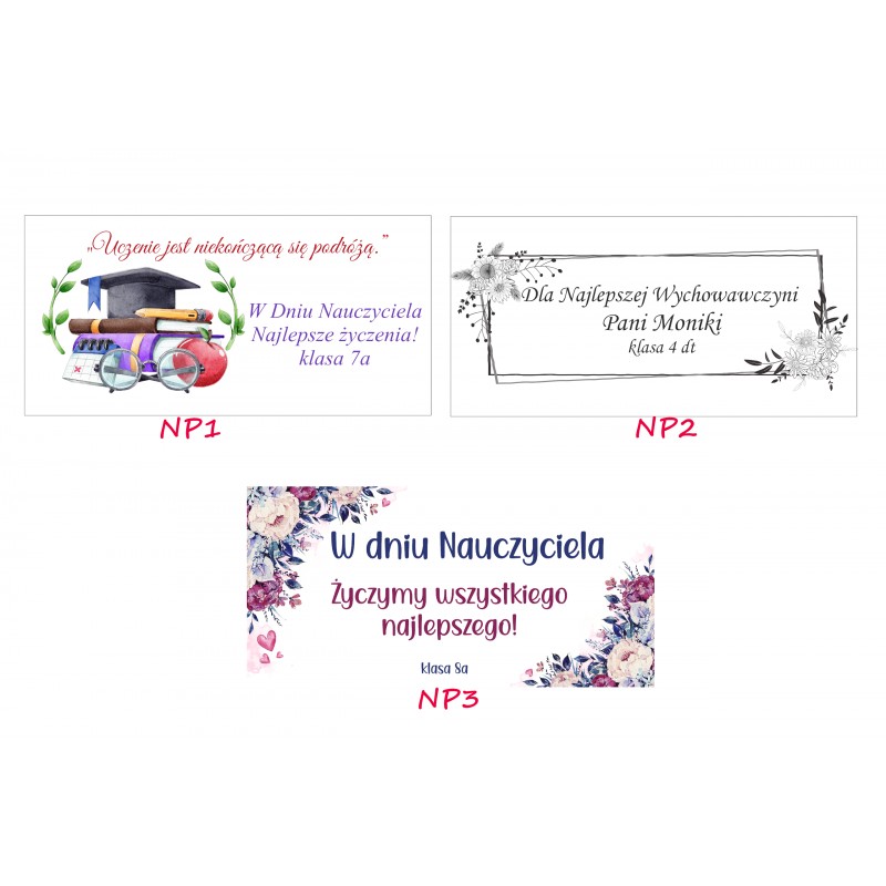 Uwaga! Po zakupie prosimy podać wzór nadruku (patrz zdjęcie z opisanymi wzorami) oraz dane do personalizacji