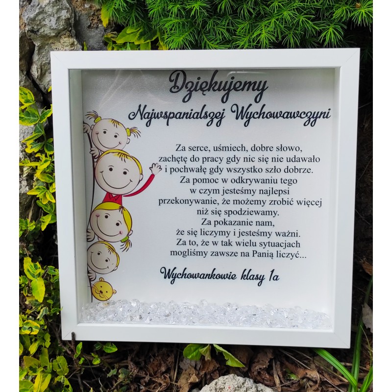 Przedmiotem sprzedaży jest piękna, biała ramka, która doskonale sprawdzi się jako eleganckie podziękowanie dla tych wyjatkowych gości jakimi są dziadkowie czy rodzice chrzestni. Ramka posiada grafikę z pamiątkowym podziękowaniem za obecność w tak uroczystym dniu jakim jest I Komunia Świeta oraz diamenciki, którę nadają elegancji i pięknie połyskują.