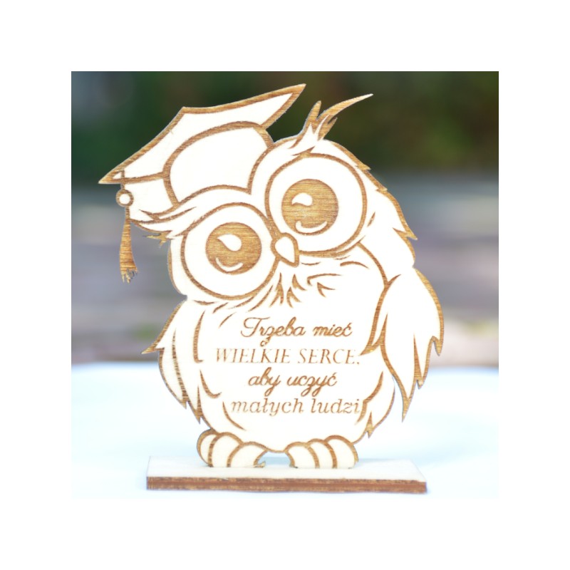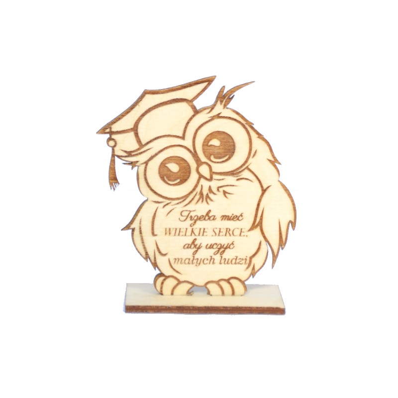 Przedmiotem sprzedaży jest SOWA - statuetka na podstawce, wykonana ze sklejki grubości 3mm. Sowa posiada grawer : " Trzeba mieć wielkie serce aby uczyć małych ludzi ".