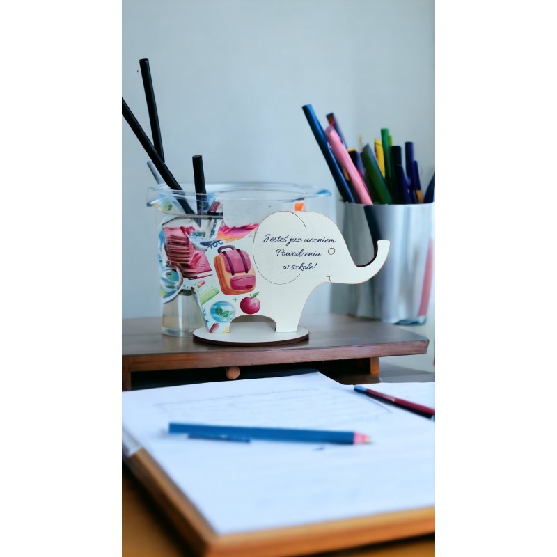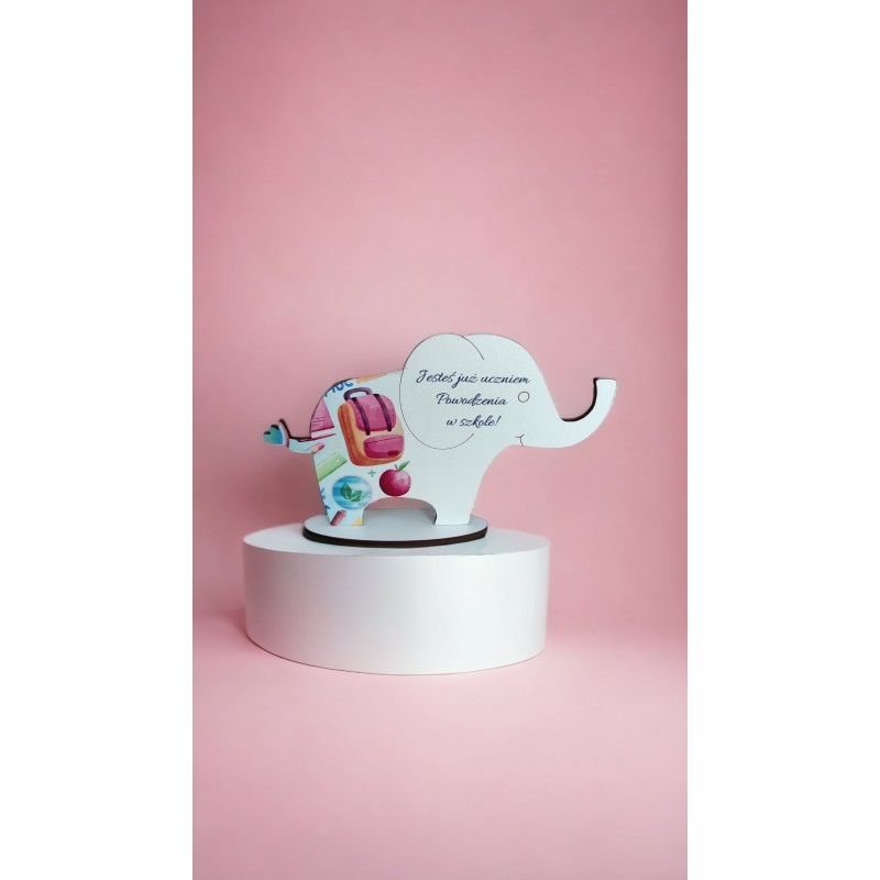 Figurka na podstawce wycięta z należytą precyzją. Posiada piękny, pamiątkowy nadruk w kolorze. Idealny prezent dla ucznia, który rozpoczyna przygodę z edukacją. Będzie doskonałym upominkiem na pasowanie na ucznia. Kształt słonia sprawia, że może być amuletem przynoszącym szczęście. Będzie pełnił rolę doskonałej dekoracji i zostanie pamiątką na lata. Po zakupie podaj wzór!!!