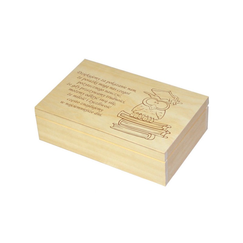 Jeśli chcesz podarować nauczycielowi wspaniałą pamiątkę, której napewno będzie używał, to pudełko z herbatą będzie super upominkiem. Świetnie sprawdzi się na dzień nauczyciela oraz zakończenie roku jako podziękowanie za całoroczny trud wychowawczy. Po zużyciu herbaty może być pojemnikiem na drobiazgi.