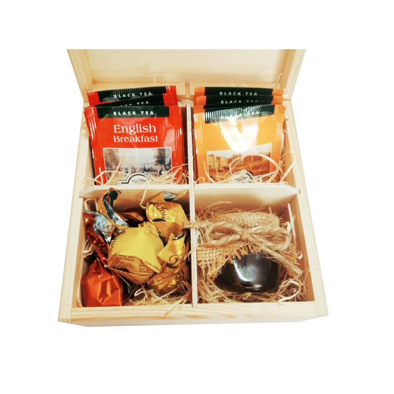 Herbaciarka zestaw prezentowy ze słodkościami dla Nauczyciela personalizowana szkatułka kuferek - zestaw 1, wzór 6