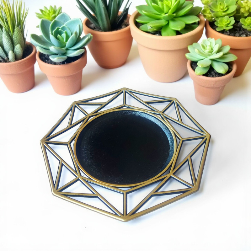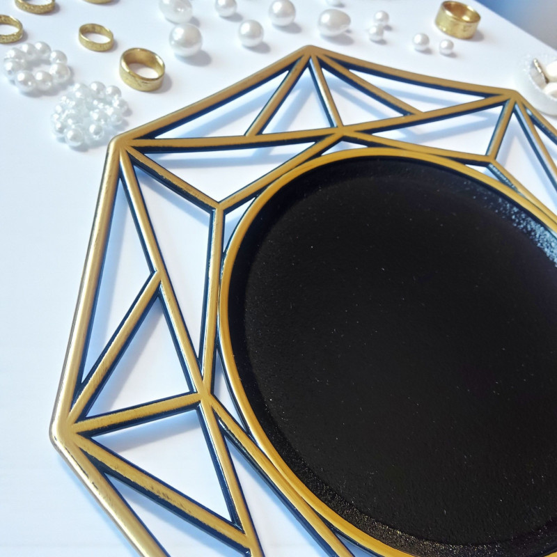 Talerz z pięknym połyskiem doskonale sprawdzi się jako podstawa do stworzonych przez Ciebie dekoracji. Wystarczy wyłożyć na niego kompozycję z np. suszu egzotycznego, szyszek czy bombek by stworzyć przepiękną ozdobę bożonarodzeniową. Wspaniale prezentuje się na stole, komodzie, parapecie okiennym. Dzięki niemu możesz stworzyć wyjątkową kompozycję dla kogoś wyjątkowego w prezencie.