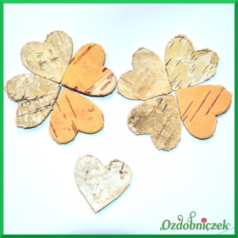 Opakowanie serc ozdobnych - naturalne, wycięte z kory brzozy