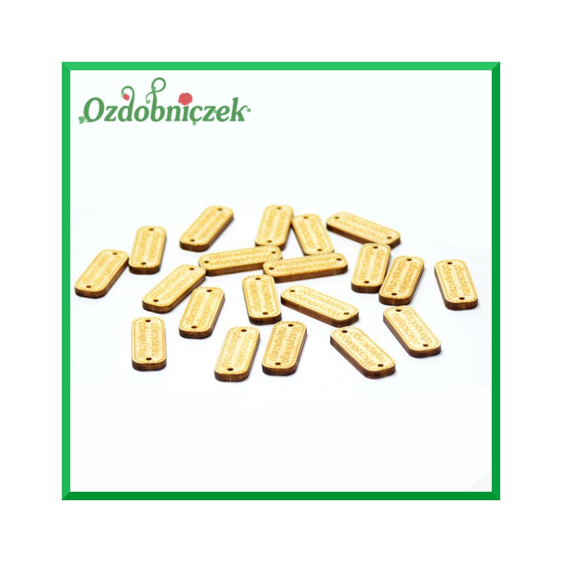 Naturalne, wycięte z drzewa ozdoby z napisem
