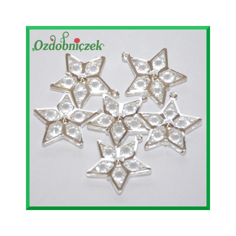 Gwiazdki metalowe z zawieszką 24 szt.-SREBRNE