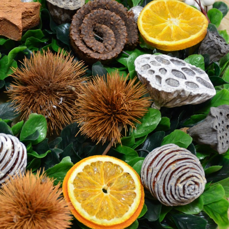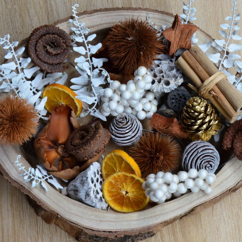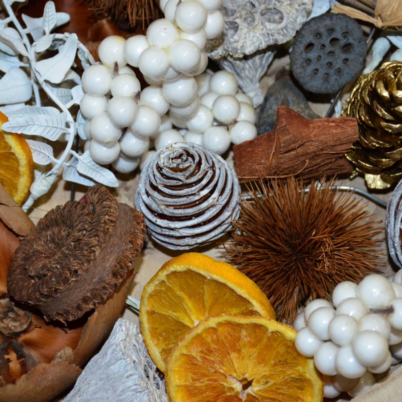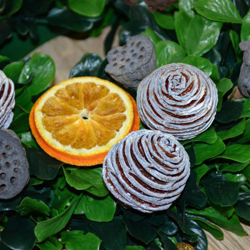 W połączeniu z suszami takimi jak pomarańcze, cynamon, badam, kwiat lilii pozwoli wykonać oryginalną i piękną dekorację do niejednego wnętrza. Można go mocować do wybranej powierzchni przy użyciu kleju na gorąco. Doskonały do wszelkich kompozycji kwiatowych, zarówno z kwiatów świeżych jak i sztucznych.