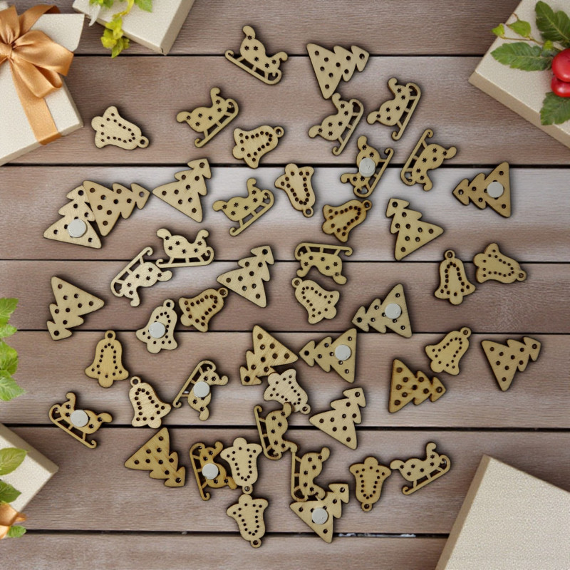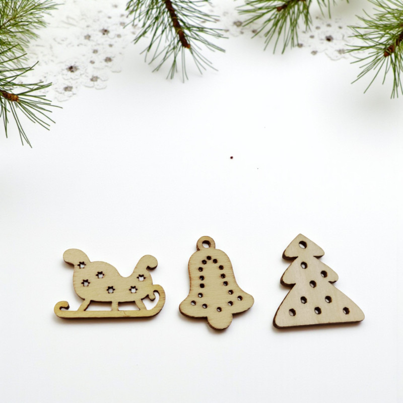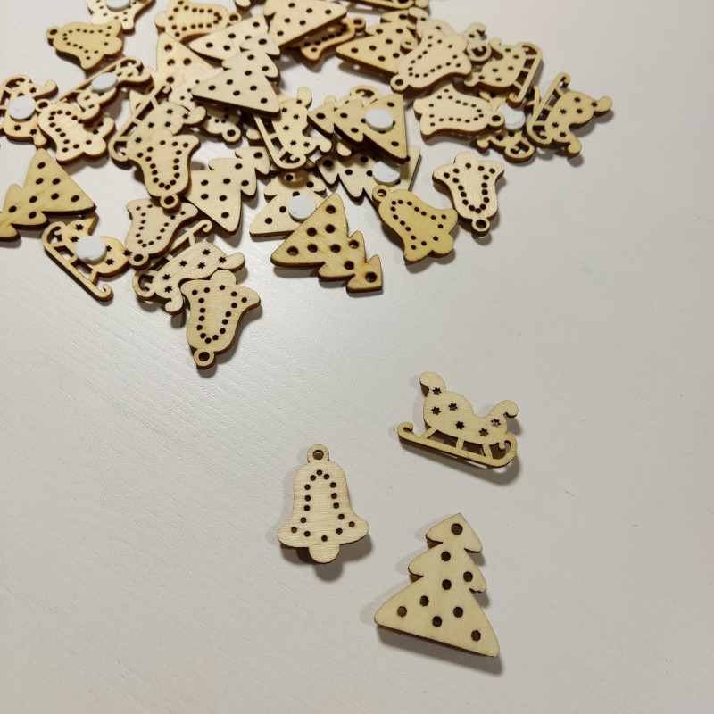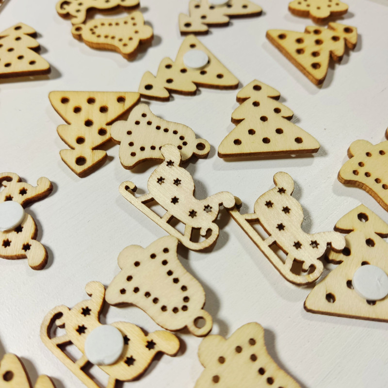 Piękne, precyzyjnie wycięte ze sklejki kształty świąteczne - sanie, dzwonki i choinki sprawdzą się przy tworzeniu dekoracji w okresie bożonarodzeniowym. Mają zarys co ułatwia dekorowanie. Doskonała podstawa do ozdabiania z dziećmi kredkami, farbami, brokatem w kleju. Przyozdobione można umieścić na stroiku, wianku, parapecie okiennym czy komodzie.