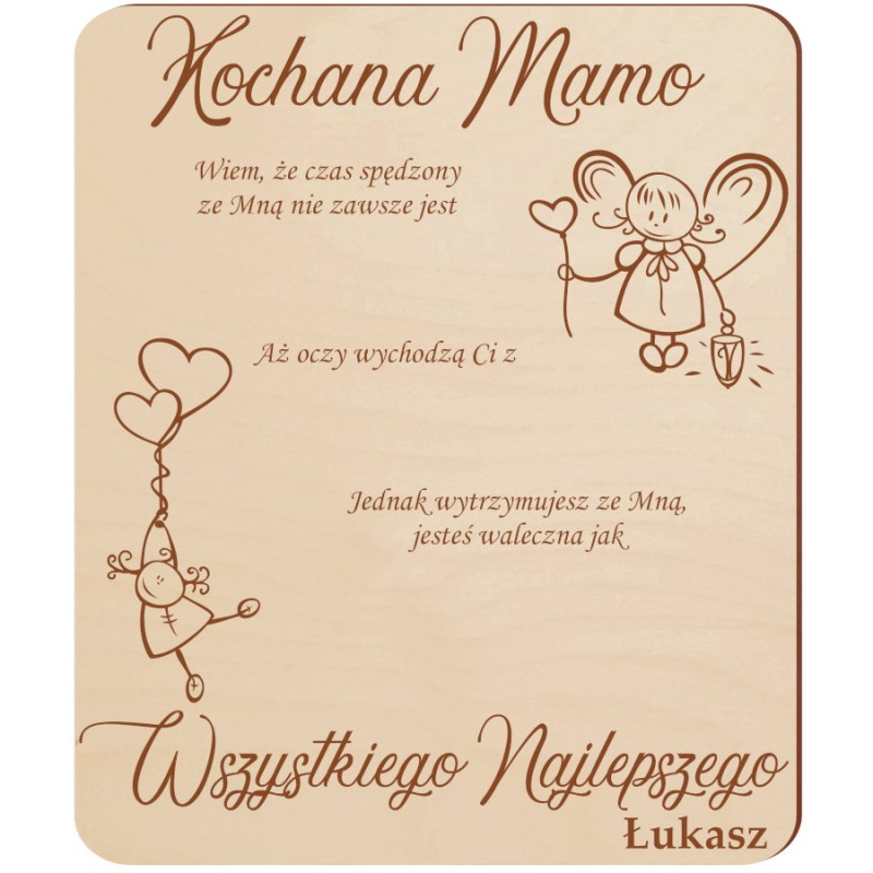 Na sklejce wykonany jest zabawny grawer kiedy dołączysz do niej batony stworzysz zabawną laurkę. Przedmiot ten może być wspaniałym pomysłem na prezent lub jako dodatek do prezentu. Idealny do stworzenia niepowtarzalnej niespodzianki .