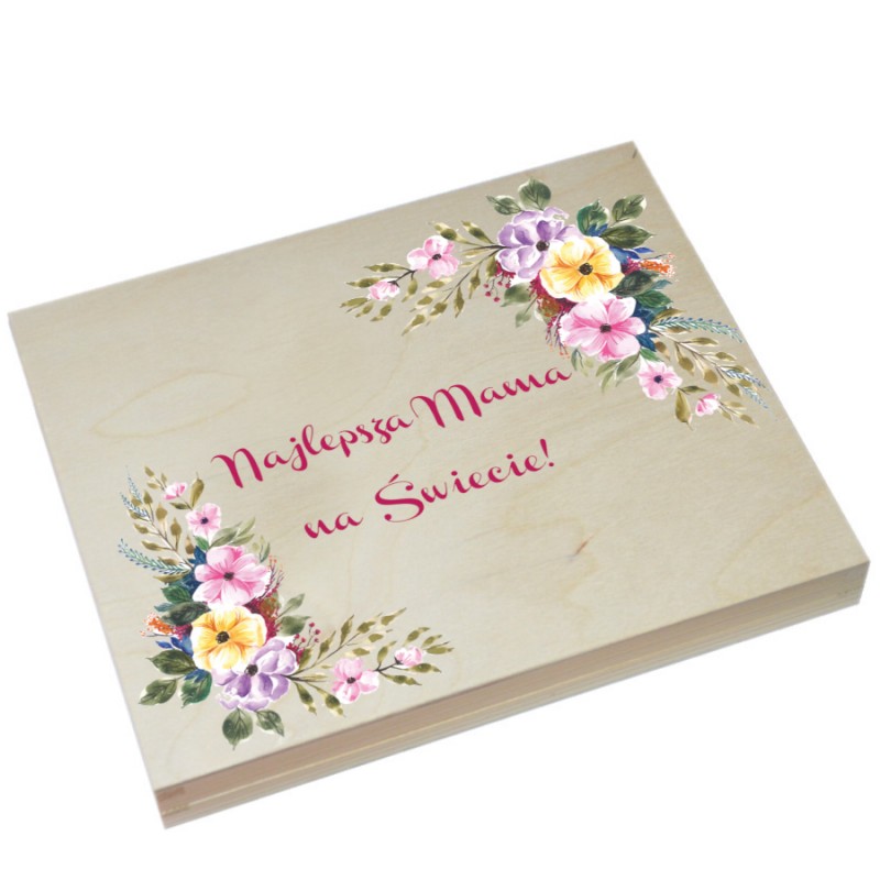 które doskonale sprawdzi się jako eleganckie, wyjątkowe opakowanie na czekoladki Merci, można też sprezentować w nim np zdjęcia. Po zjedzeniu zawartości służyć może jako ozdobne pudełeczko na przechowywanie drobiazgów. Pudełko jest w kolorze naturalnego drewna ozdobione kolorowym, pamiątkowym nadrukiem.