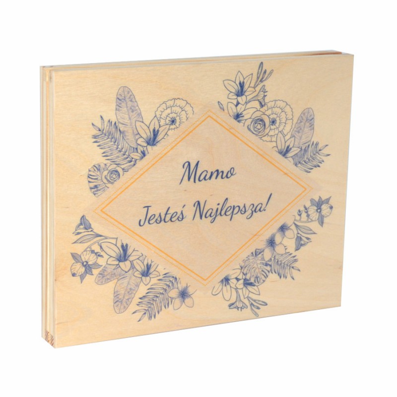 Drewniane pudełko na czekoladki Merci z okazji Dnia Matki wzór nr8 Zobacz większe