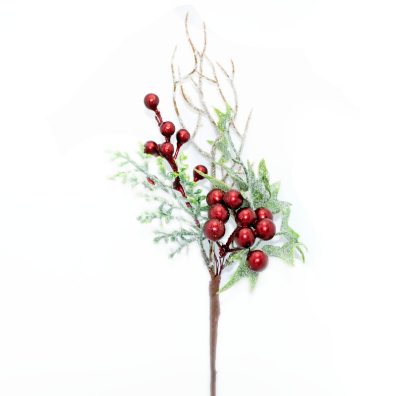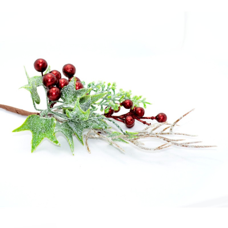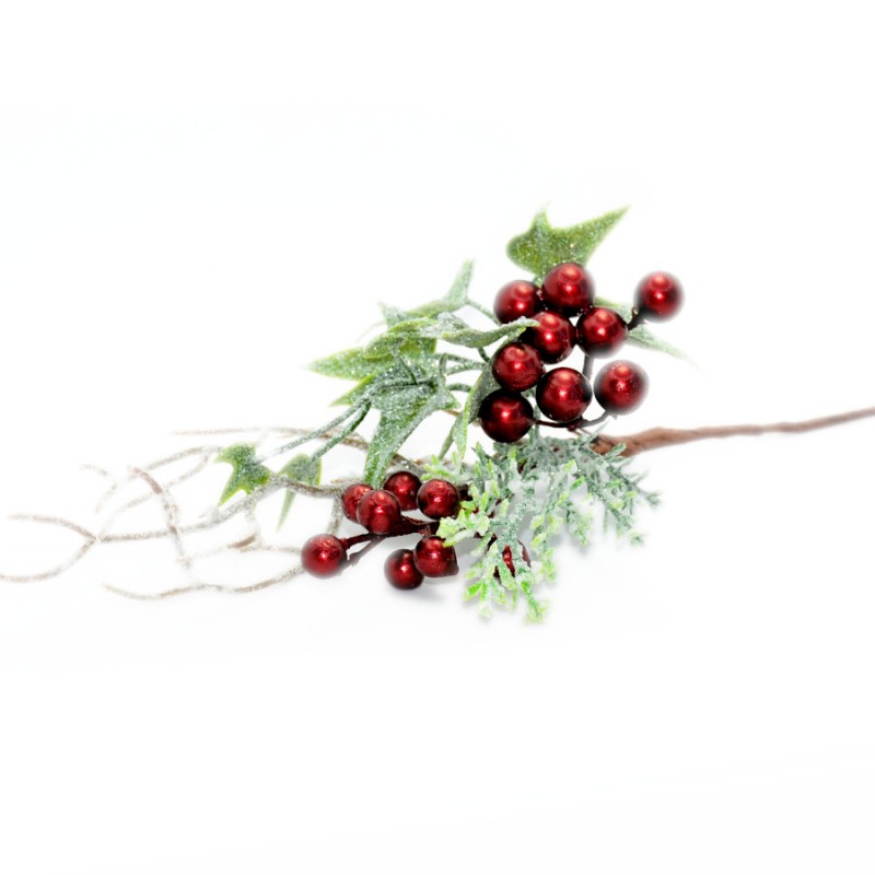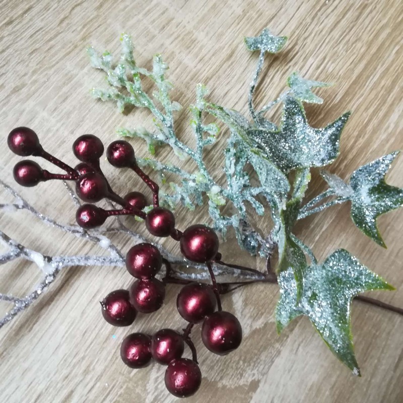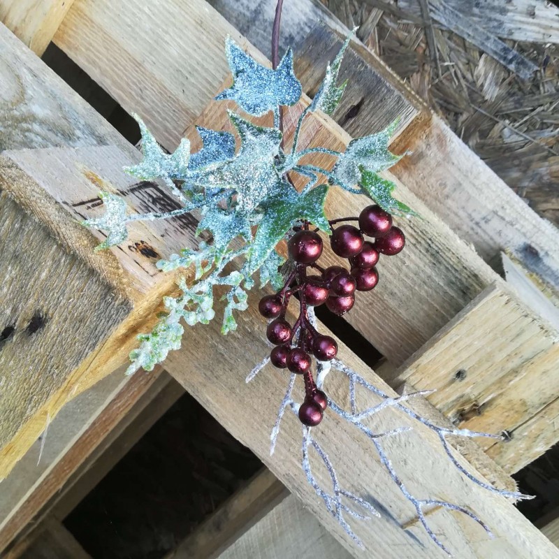Ozdoba pięknie prezentują się w bukiecie zarówno z kwiatów sztucznych jak i świeżych. Doda świetności wykonanym stroikom czy wiankom. Doskonały do kompozycji zimowej i bożonarodzeniowej. Gałązkę można wykorzystać w całości lub podzielić ją na poszczególne elemnty wykorzystujący każdy z osobna.