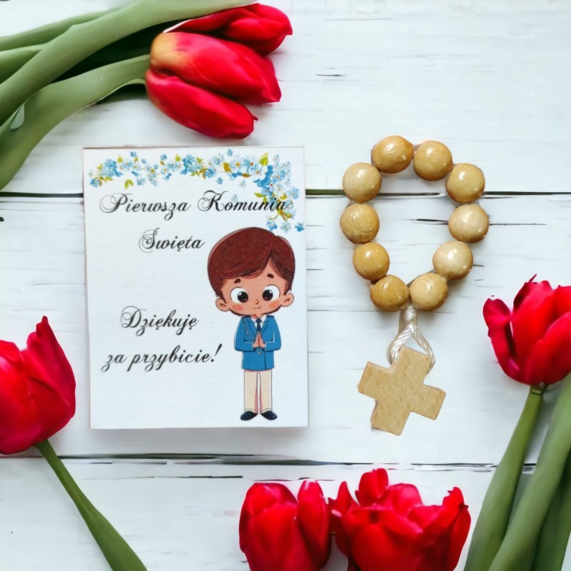 Doskonała forma prezentu, podziękowanie za obecność na uroczystości. Spraw, aby ta ważna uroczystość dla Twojego dziecka pozostała długo w pamięci zaproszonym gościom. Różaniec będzie miłą pamiątką, talizmanem na szczęście.
