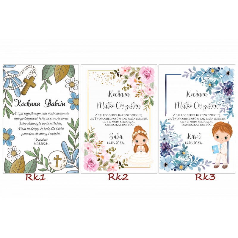 Po zakupie prosimy wybrać wzór oraz podać dane do personalizacji: imię dziecka i datę uroczystości!!