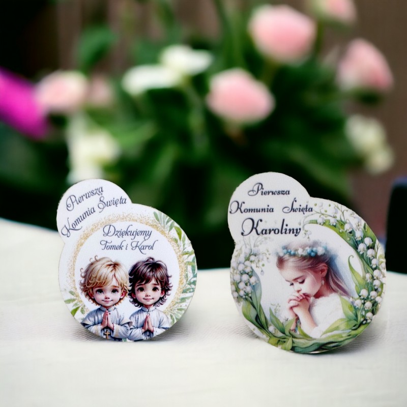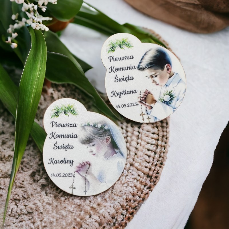 Drewniany magnes posiada pamiątkowy nadruk uv. Nadruk jest personalizowany. Wręczenie gościom tej wyjątkowej niespodzianki to idealny sposób na podziękowanie im za przybycie na uroczystość!