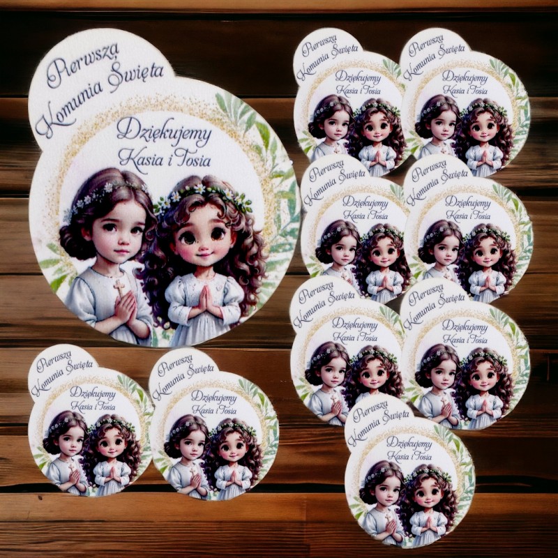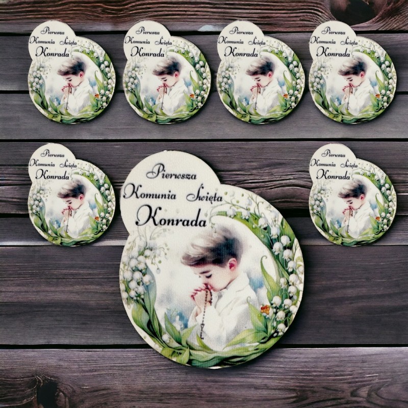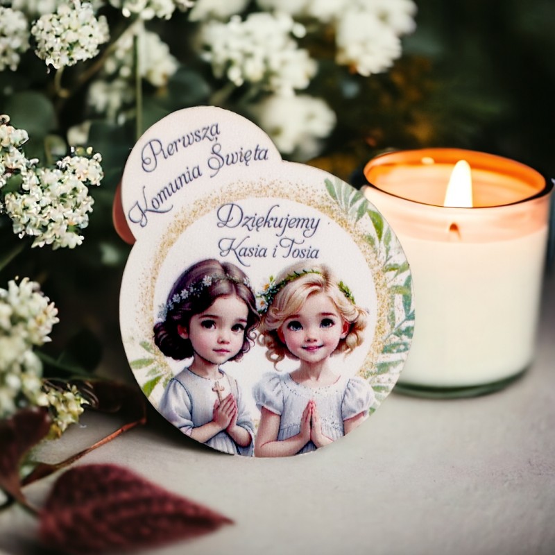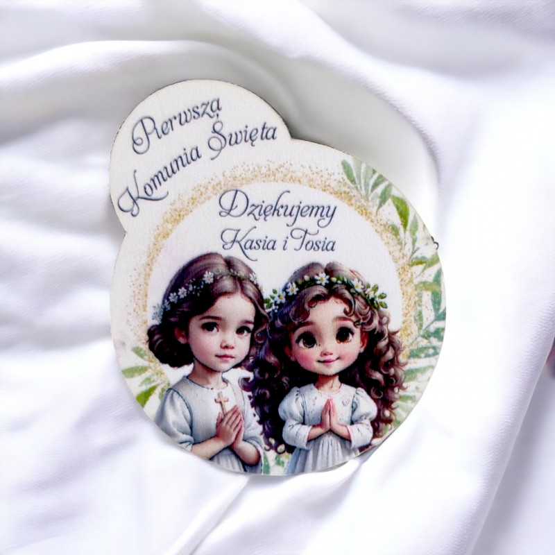 Przedmiotem sprzedaży jest drewniane podziękowanie za obecność na I Komuni Świętej.