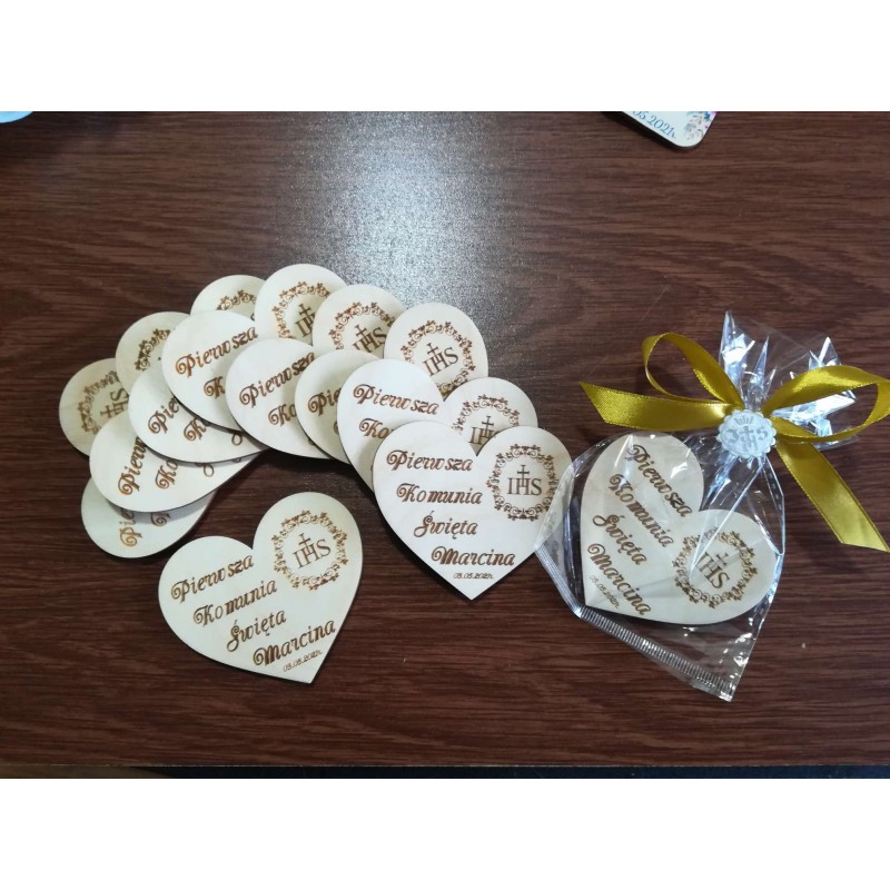 Przedmiotem sprzedaży jest drewniane podziękowanie za obecność na I Komuni Świętej.
