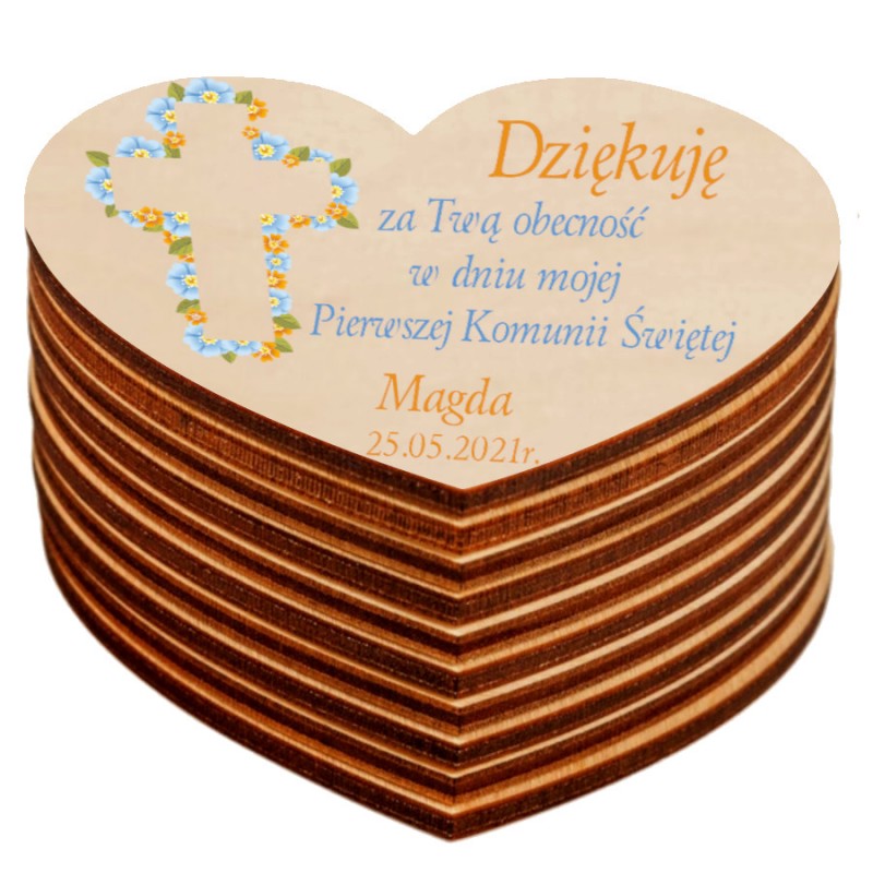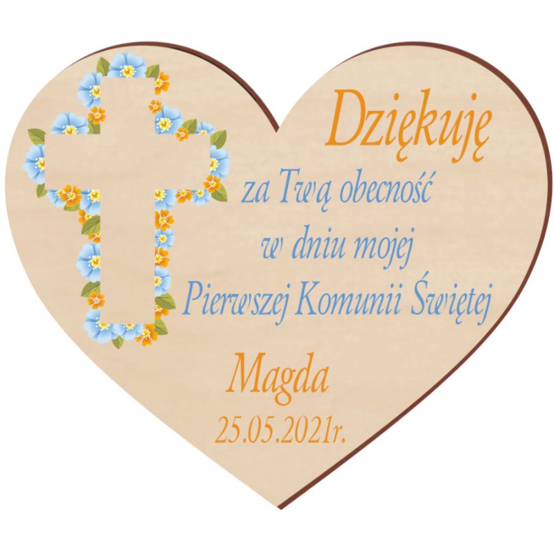 Przedmiotem sprzedaży jest drewniane podziękowanie za obecność na I Komuni Świętej.