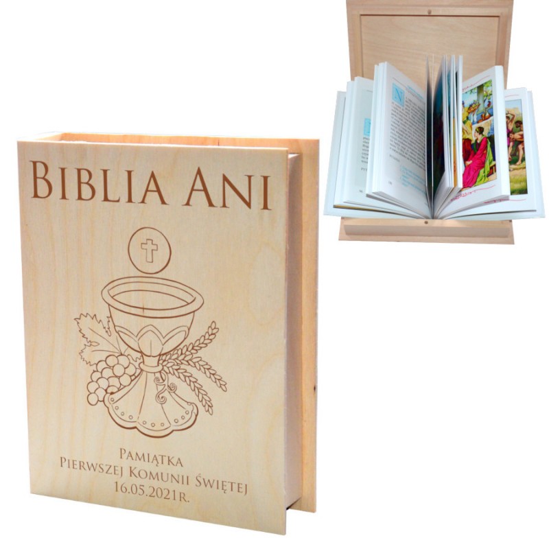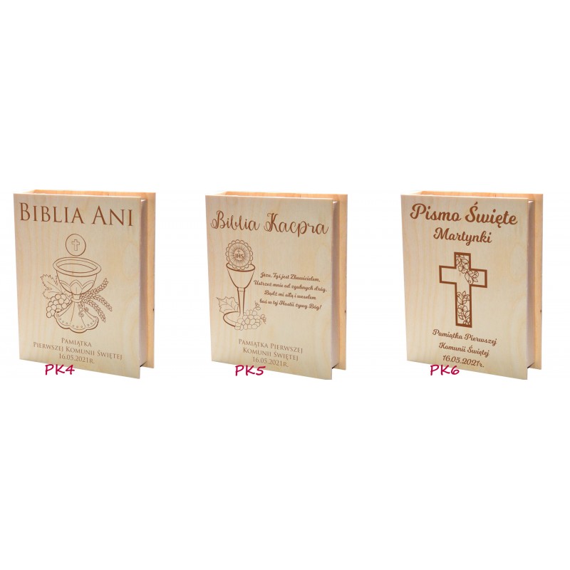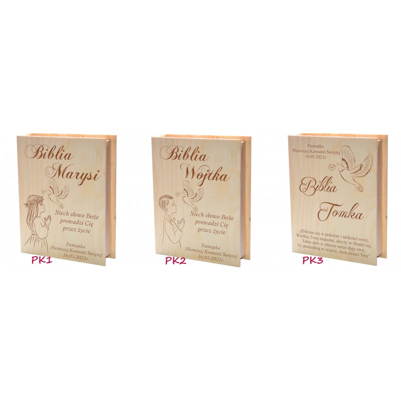 Uwaga! Pudełko nie zawiera Biblii. Po zakupie prosimy podać wzór graweru (patrz zdjęcie z opisanymi wzorami) oraz dane do personalizacji