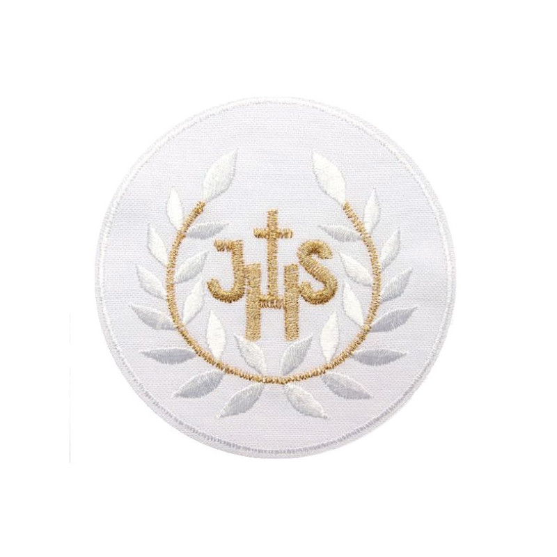 Piękna, delikatna, materiałowa aplikacja komunijna z napisem doskonała