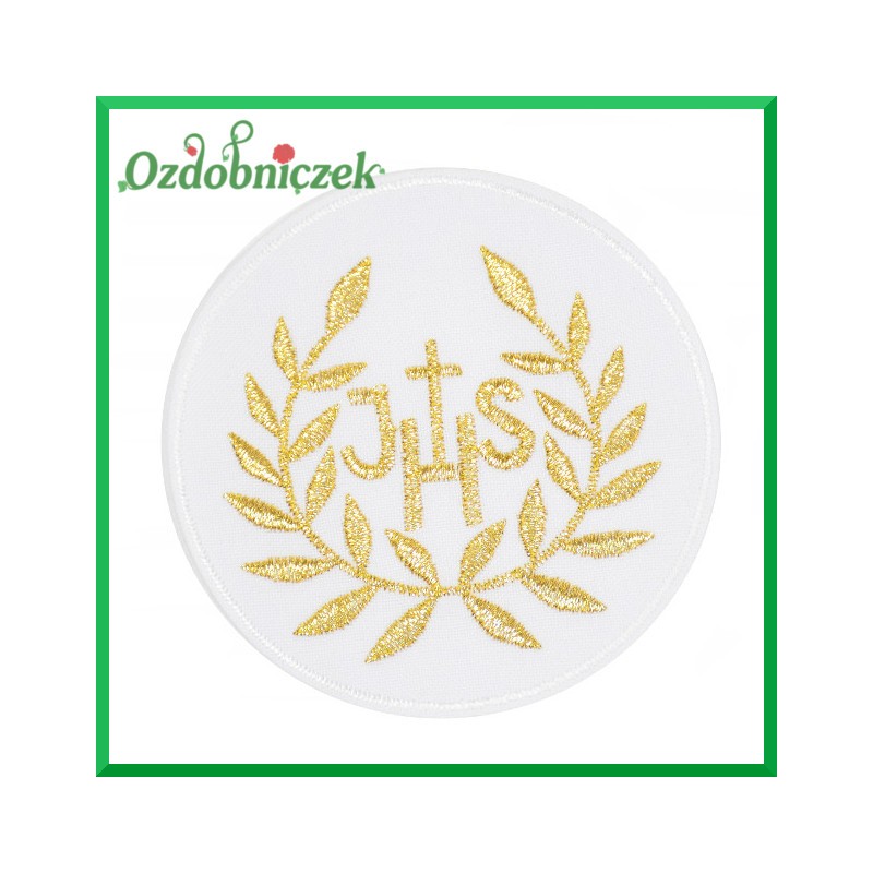 Piękna, delikatna, materiałowa aplikacja komunijna z napisem doskonała