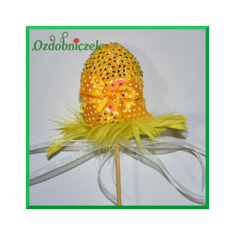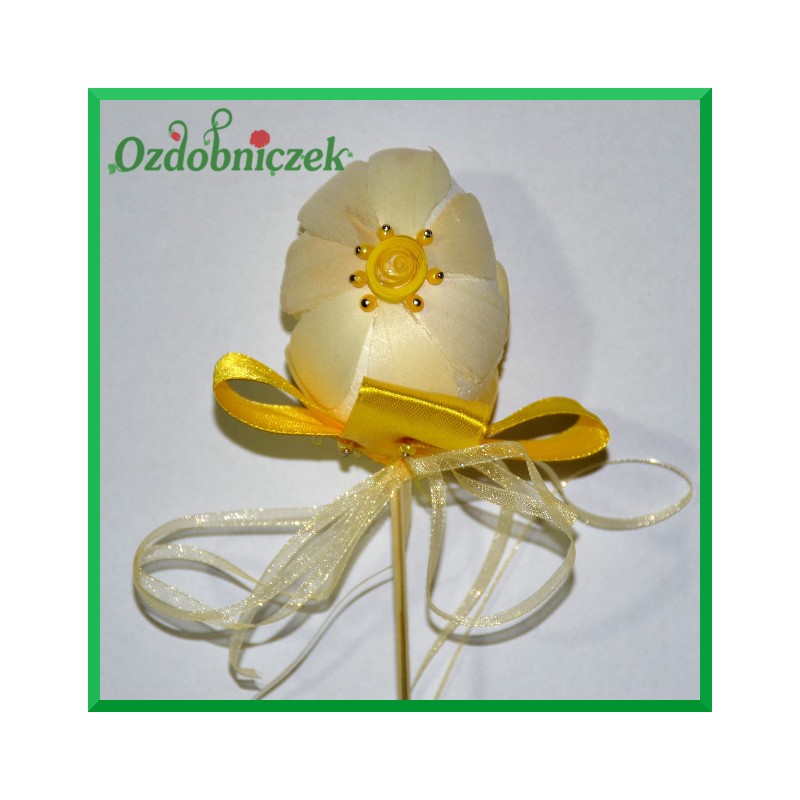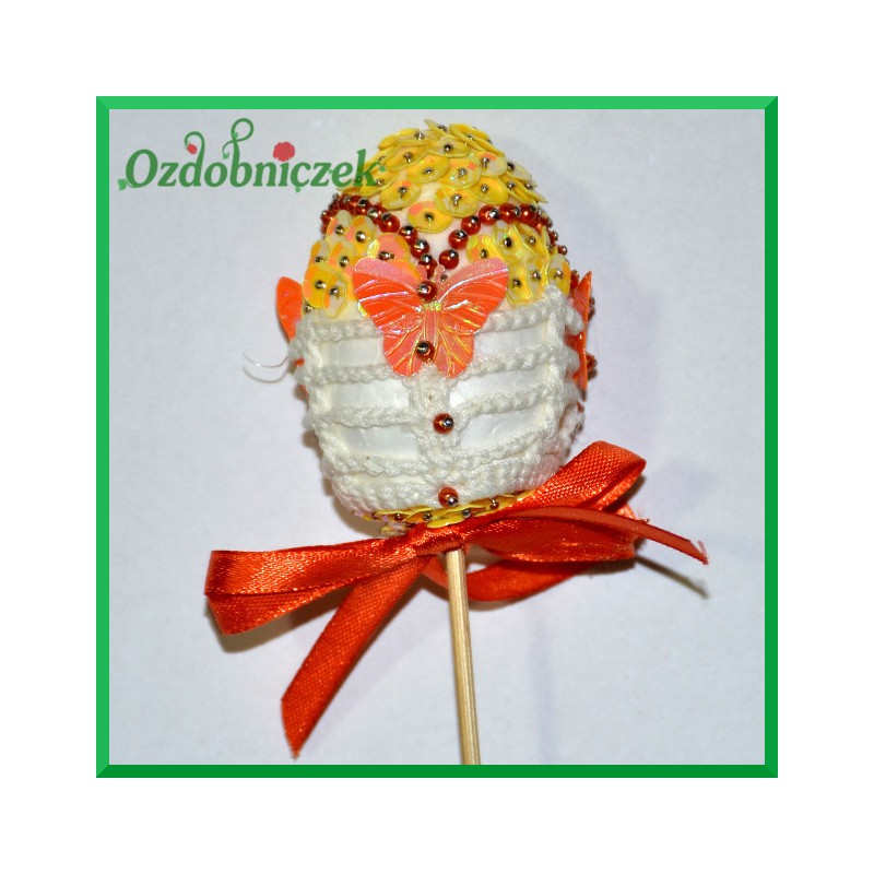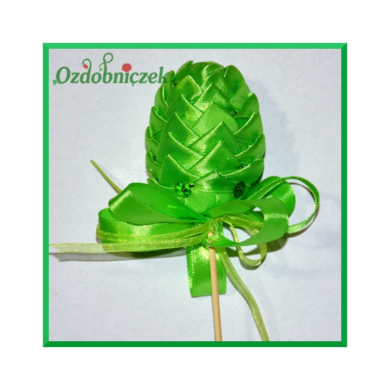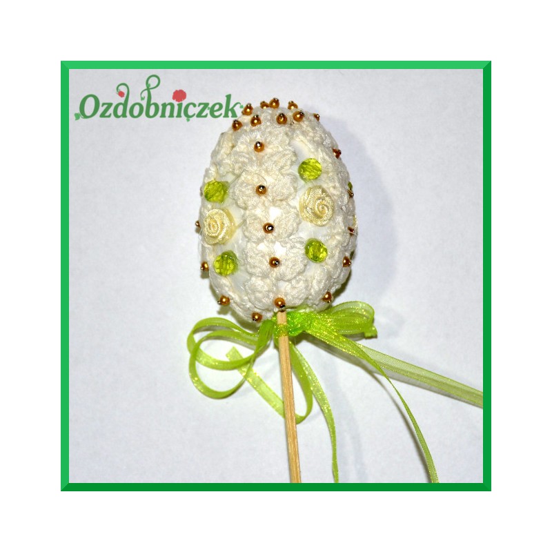 tasiemkami, perełkami. Styropian jest miękki toteż z łatwością można jajko przyozdabiać przy użyciu