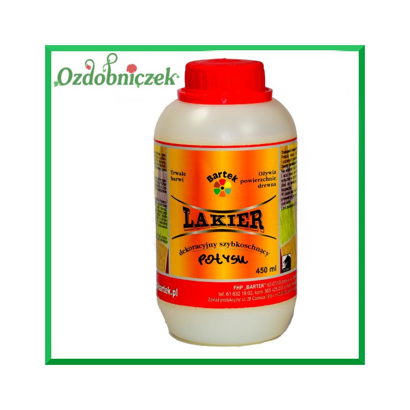Czas schnięcia około 24 godzin, pełne utwardzenie lakieru po upływie 24 godzin.