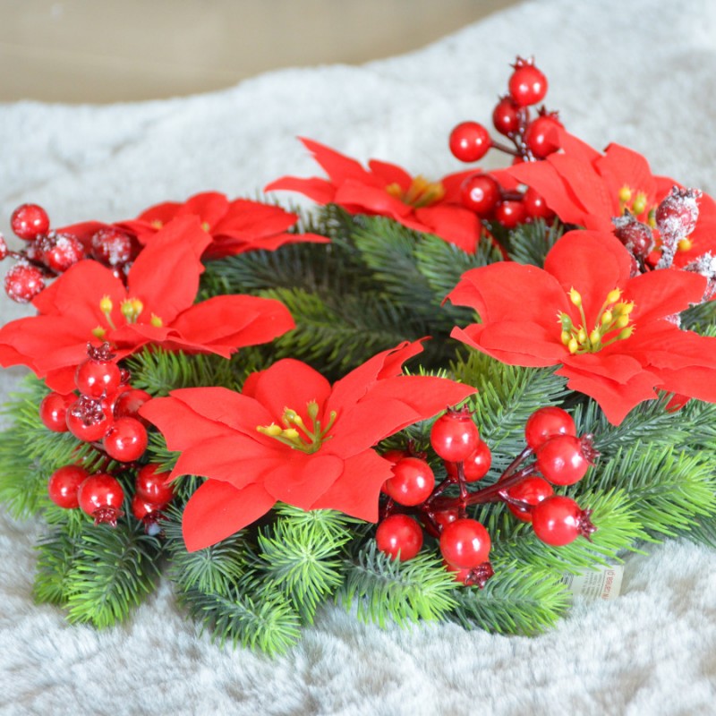prezentuje się na wianku lub stroiku.