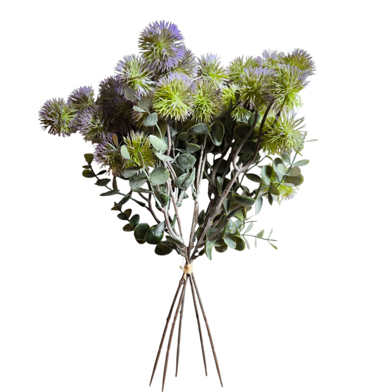 Nowoczesna dekoracja do salonu, biura, wazonu lub kompozycji florystycznej. Dodaj wyjątkowy akcent do swojego wnętrza dzięki tej efektownej ozdobie z wukaliptusem i czosnkiem! Realistyczne wykonanie i modna kolorystyka – cieniowane kolory – sprawiają, że ta sztuczna roślina idealnie wpisuje się w styl boho, glamour, loftowy i skandynawski.