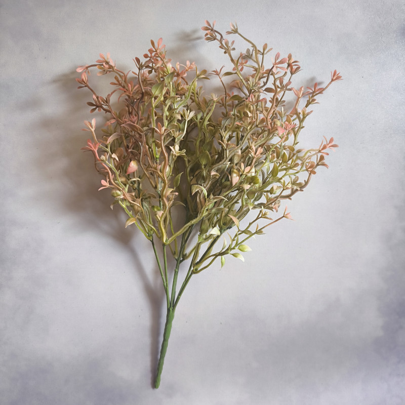 Nowoczesna dekoracja do salonu, biura, wazonu lub kompozycji florystycznej. Dodaj wyjątkowy akcent do swojego wnętrza dzięki tej efektownej ozdobie z cieniowanymi listakmi i kwiatuszkami! Realistyczne wykonanie i modna kolorystyka – od zieleni, przez róż – sprawiają, że ta sztuczna roślina idealnie wpisuje się w styl boho, glamour, loftowy i skandynawski.