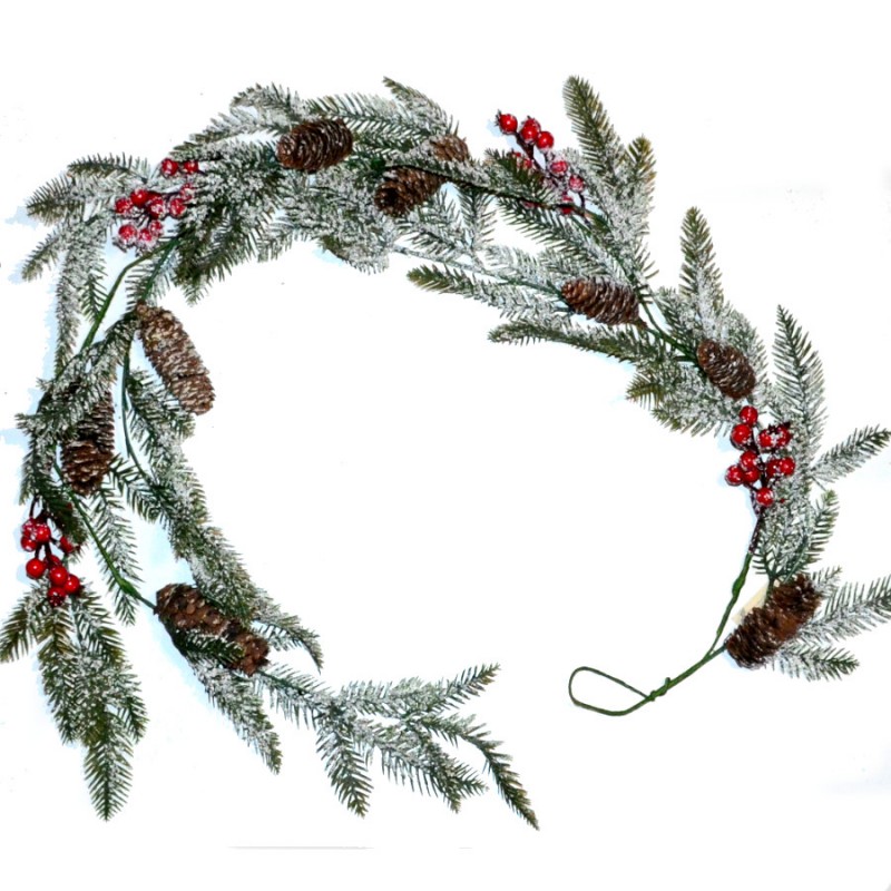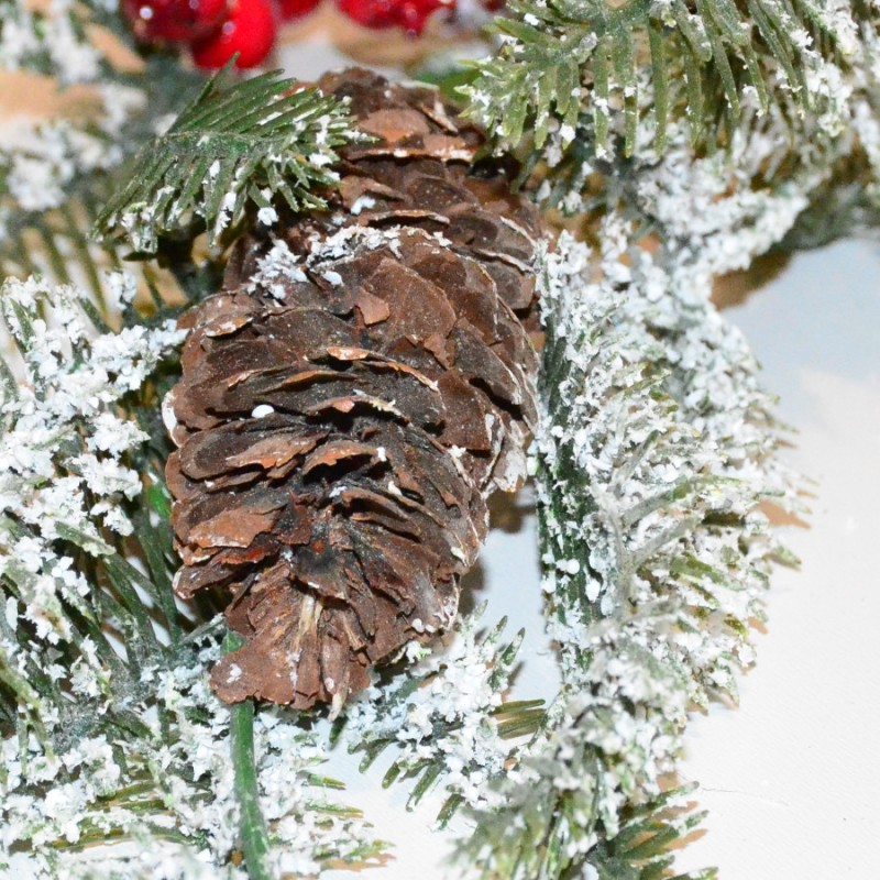 Starannie wykonana, śliczna długa ozdoba ze sztucznych gałązek i owoców uformowana w girlandę może posłużyć jako element dekoracji Twojego domu na czas Świąt Bożego Narodzenia. Można ją umieścić na firmowym biurku, przystroić nią stół, komodę, balustradę. Idealna przy tworzeniu aranżacji wystwaw sklepowych.