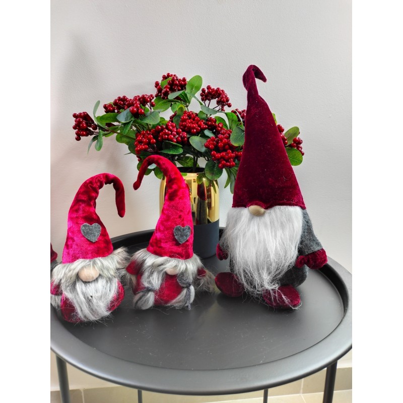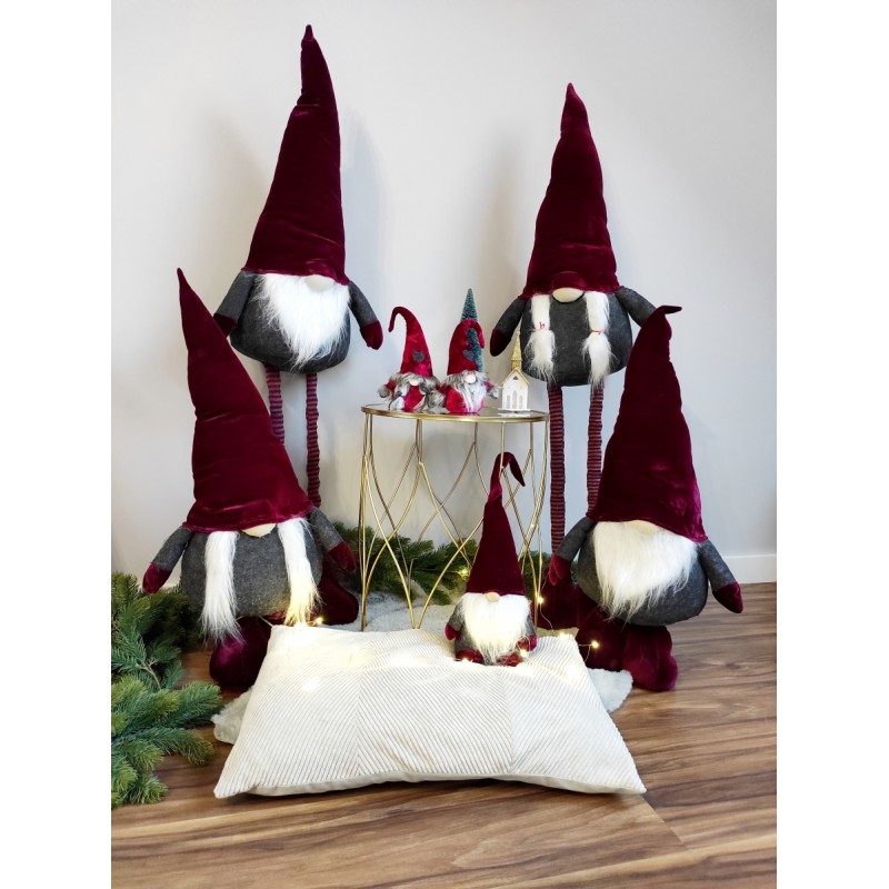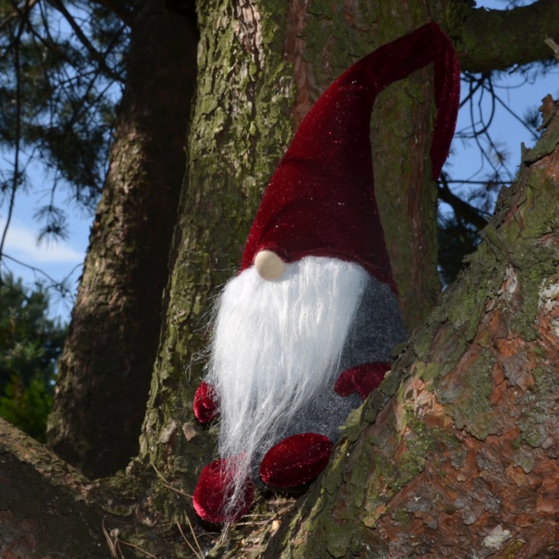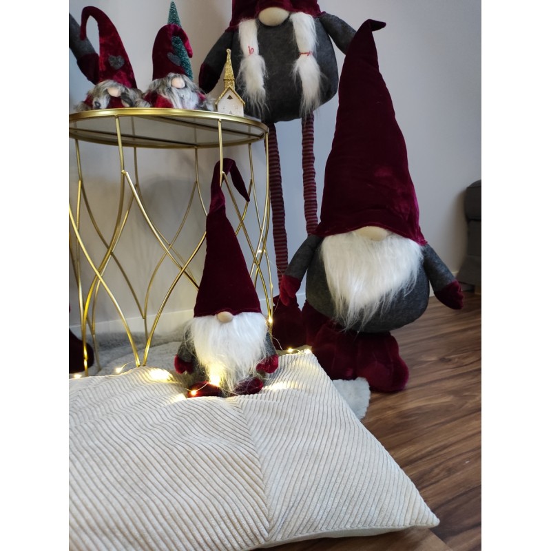 Starannie wykonany, śliczny skrzat ozdobny w aksamitnym ubranku może posłużyć jako element dekoracji Twojego domu na czas Świąt Bożego Narodzenia. Można go umieścić przy choince, przystroić nim stół, komodę, parapet okienny, podarować w prezencie. W czapce posiada drucik dzięki czemu można mu dowolnie modelować jej końcówkę. Idealny do salonu czy pokoju dziecięcego.