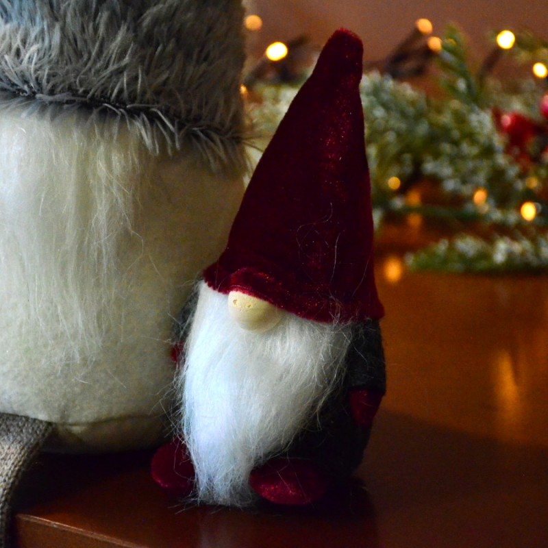 Starannie wykonany, śliczny skrzat ozdobny w filcowym ubranku może posłużyć jako element dekoracji Twojego domu na czas Świąt Bożego Narodzenia. Można go umieścić przy choince, przystroić nim stół, komodę, parapet okienny, podarować w prezencie. W czapce posiada drucik dzięki czemu można mu dowolnie modelować jej końcówkę. Idealny do salonu czy pokoju dziecięcego.