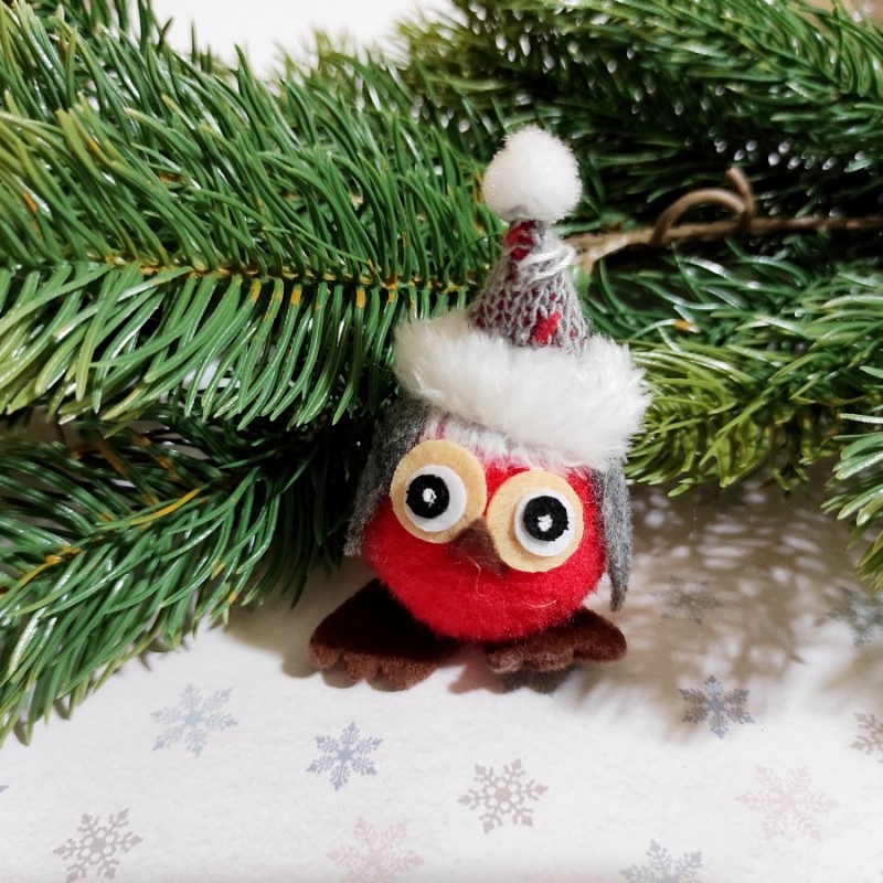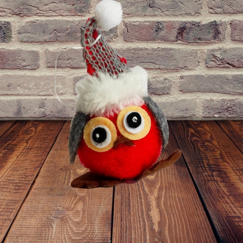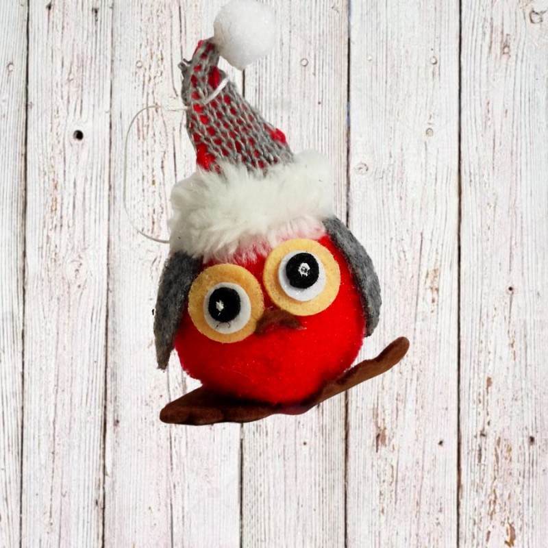 Prześliczna sowa w formie zawieszki.Wykonana z filcu. Idealna ozdoba świąteczna, którą można zawiesić na choince w oknie bądź wykorzystać do udekorowania świątecznego stroika czy wianuszka.