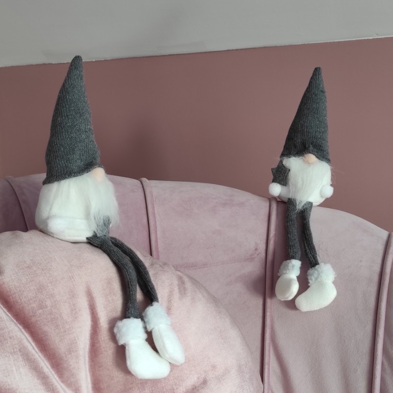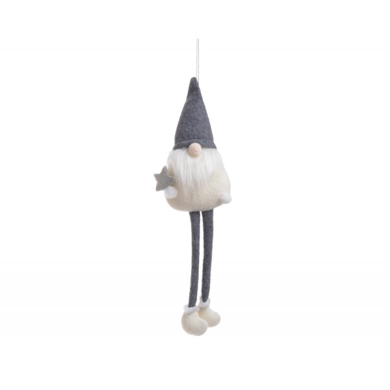 Prześliczny skrzat wykonany z delikatnego, miękkiego materiału. Idealna ozdoba świąteczna, którą można zawiesić na choince w oknie bądź wykorzystać do udekorowania świątecznego stroika czy wianuszka. Ma nietypowo długie nogi zakończone bucikami z z filcu. Można go zarówno zawiesić jak i posadzić w wybranym miejscu.