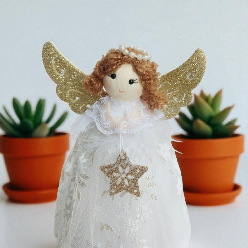 Aniołek w tiulowej sukience - biało-złoty