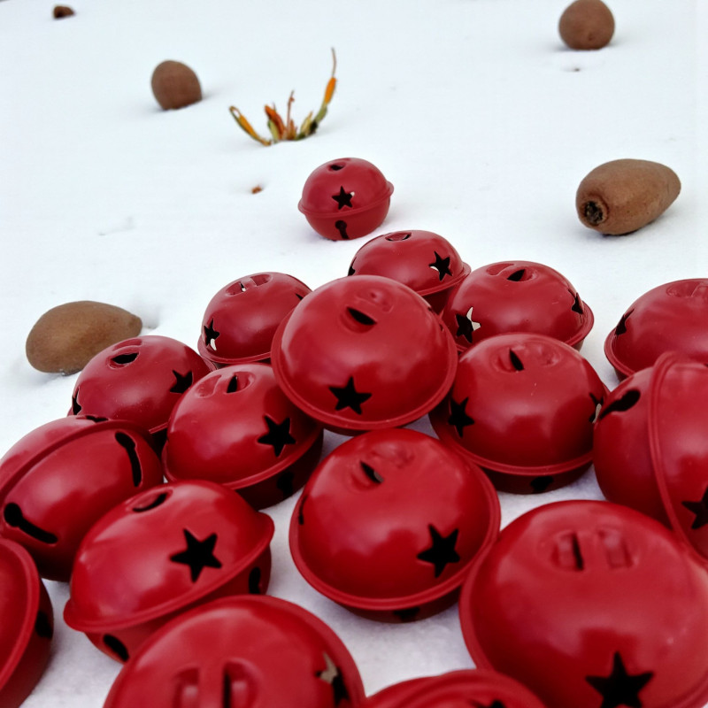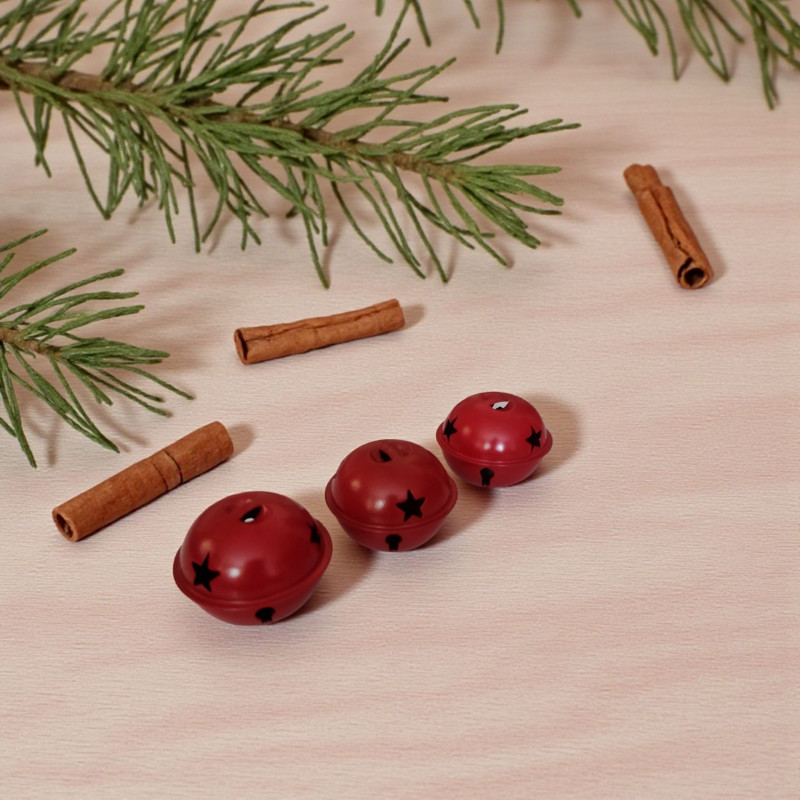 Dzwonki metalowe doskonałe jako dodatek do wystroju wnetrz w okresie Bożonarodzeniowym. Precyzyjnie wykonane, posiadają wycięte gwiazdki. Wewnątz kulka - dzwonią. Podkreślą skandynawski styl.