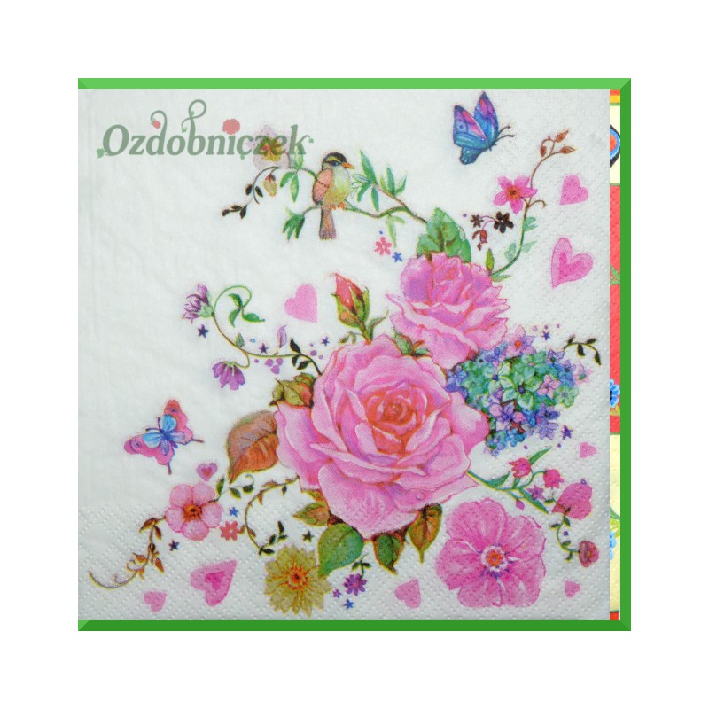Serwetka do decoupage - duże róże i motylki Zobacz większe