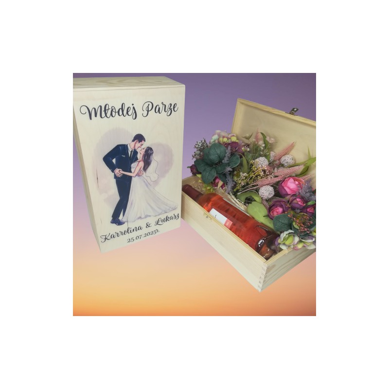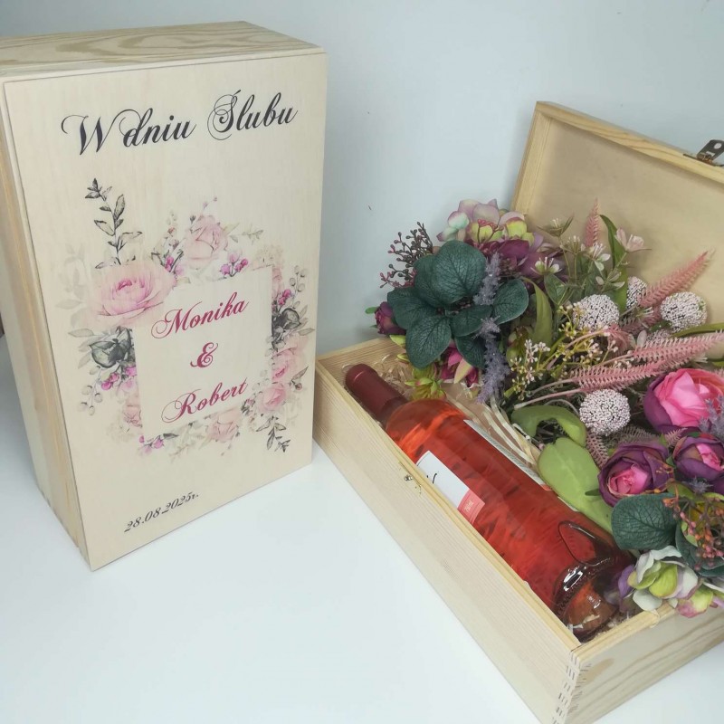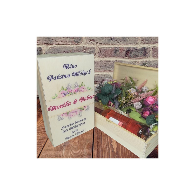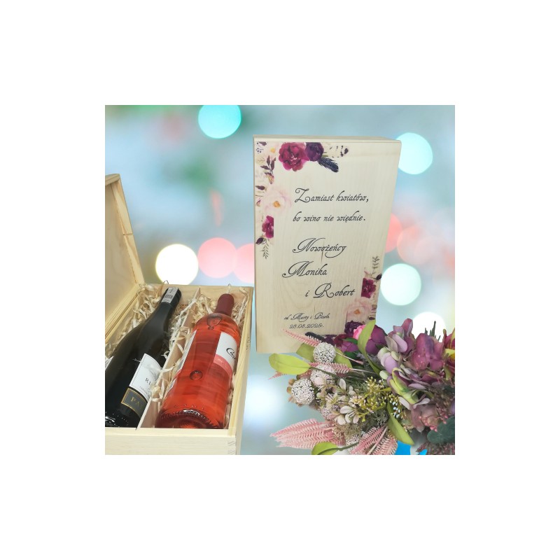 Umieszczone na zdjęciu wino oraz wypełnienie (wełna drzewna) nie stanowi zestawu ze skrzynką!