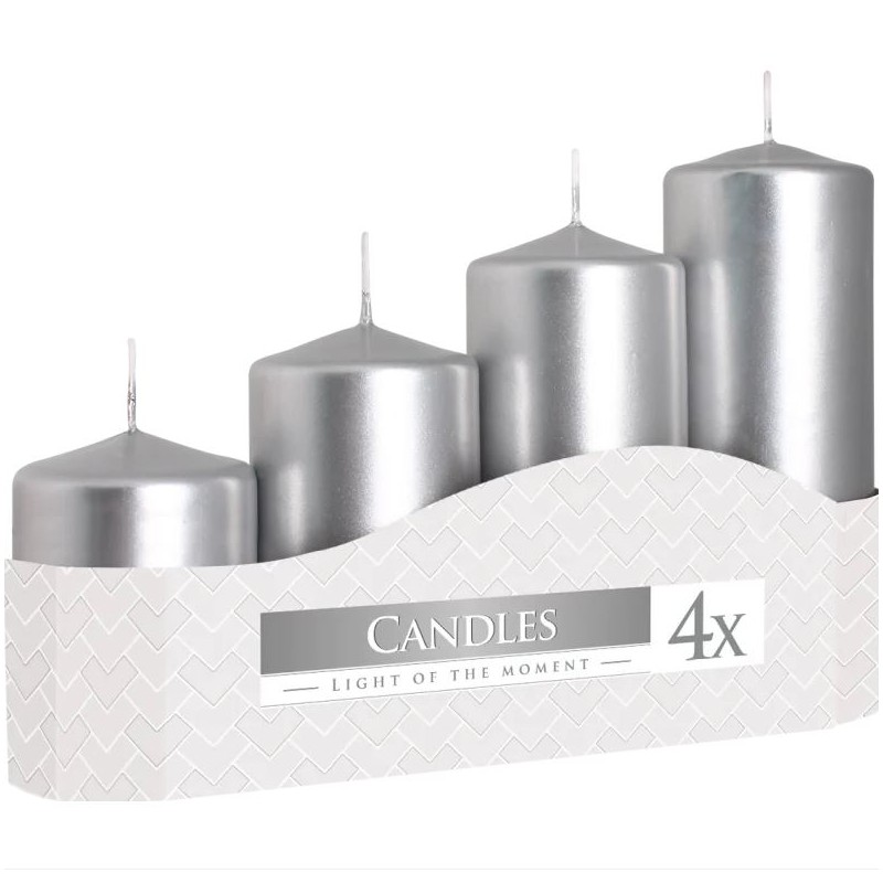 Zestaw 4 szt świec walcowych srebro metaliczne