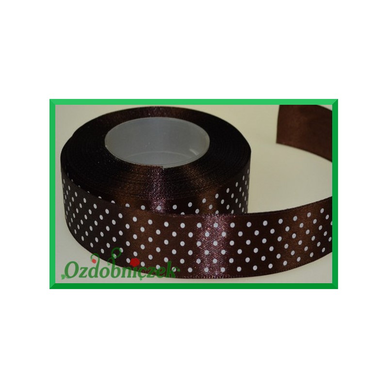 Tasiemka satynowa w kropki brązowa