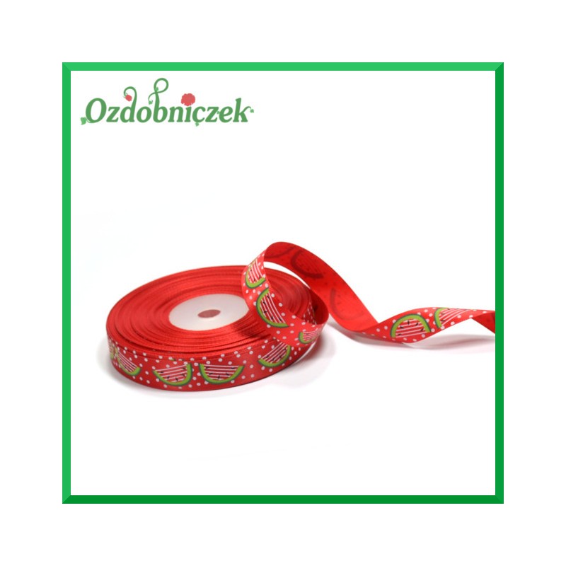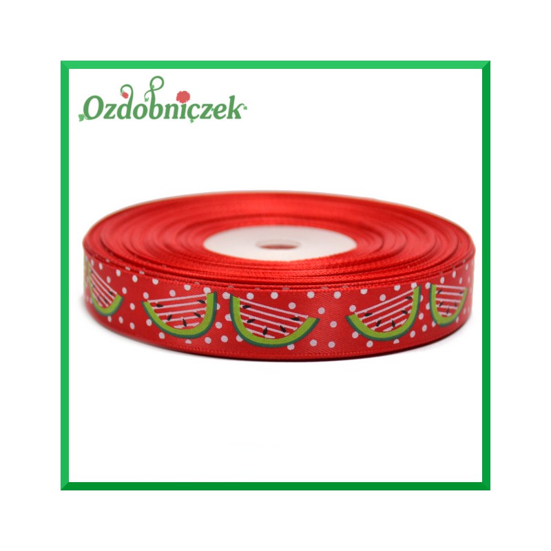 Tasiemka SATYNOWA czerwona -  ARBUZ 15mm/3mb