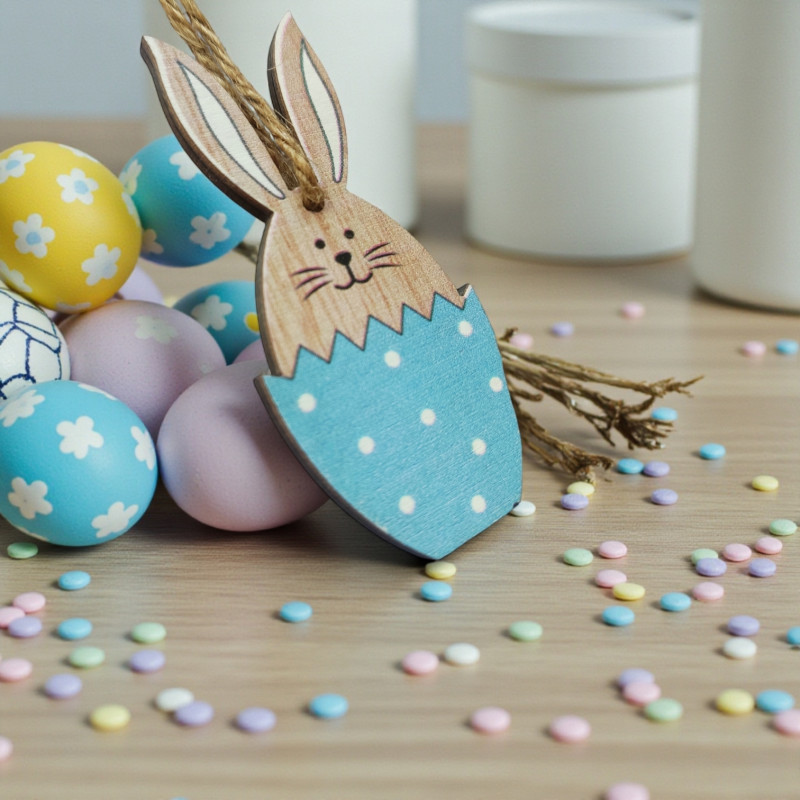Wycięta z drzewa ozdobna dekoracja doskonale znajduje zastosowanie przy sporządzaniu stroików, kompozycji na stół. Wykonany z naturalnych drewienek ozdobny element uświetni samodzielnie wykonywane dekoracje zwłaszcza w okresie wiosennym, wielkanocnym. Za jej pomocą przystroisz kartki okolicznościowe, zaproszenia, pudełka, bukiety kwiatów.