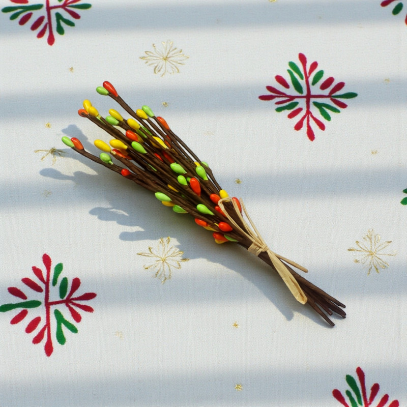 Śliczna, wykonana z doskonałej jakości materiału, bardzo naturalna gałązka pięknie prezentuje się w bukiecie zarówno z kwiatów sztucznych jak i świeżych. Doda świetności zdobionym kartkom okolicznościowym, stroikom.