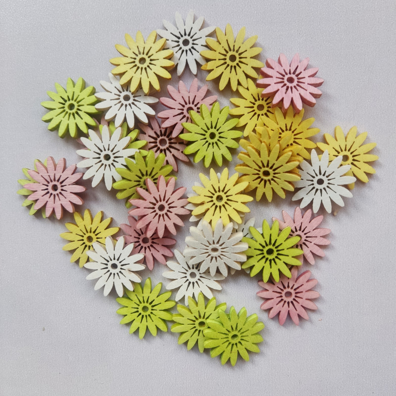Opakowanie zawiera: 36zt kwiatuszków w miksie kolorów: biały, żółty, róż i limonka